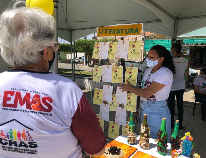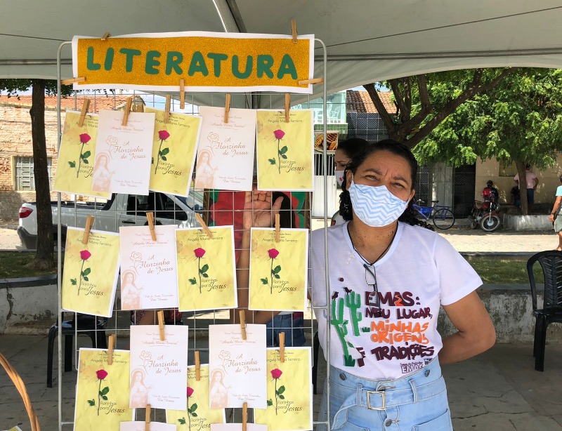 A programação foi idealizada pela Secretaria de Cultura através da Lei Aldir Blanc, o que possibilitou, a inclusão de artistas locais. A exposição teve peças em artesanato e livros de literatura com a história de Santa Terezinha, padroeira de Emas – que foram apresentados por Ângela Maria, Ana Maria e San’atana Loureiro.