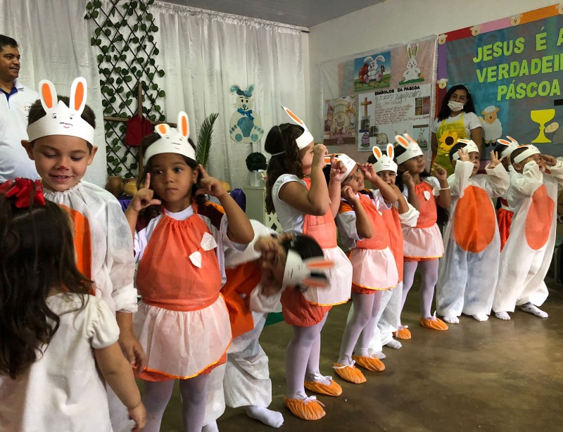 O coelho da Páscoa passou pelos centros de educação do município de Emas durante a Semana Santa e deixou um lindo rastro de alegria sobre o verdadeiro significado da Páscoa.