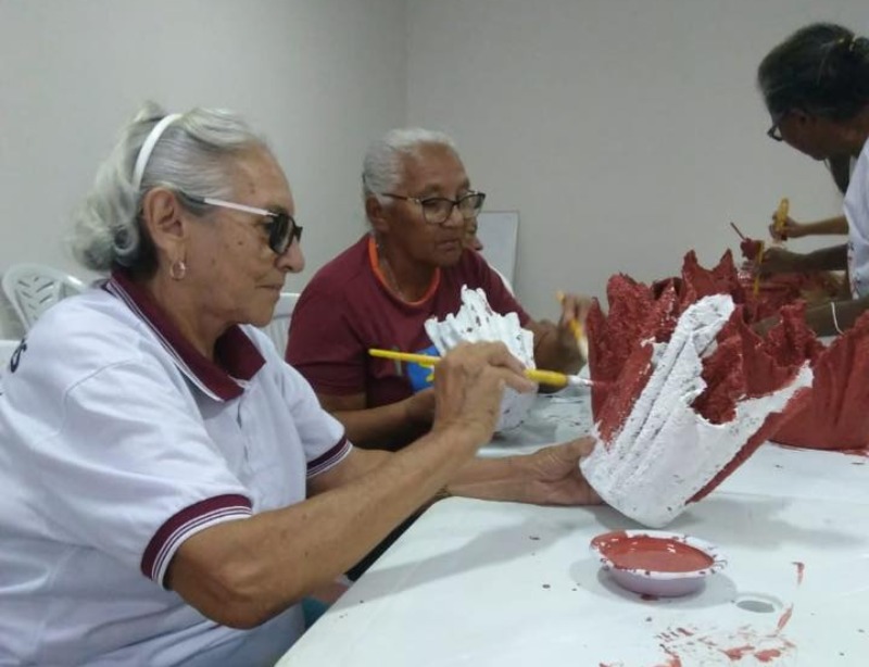 Idosos participam de oficina de artes
