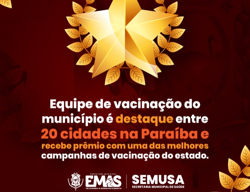 Município de Emas é destaque na Paraíba e ganha prêmio de melhor cobertura vacinal contra a Covid-19 no Estado