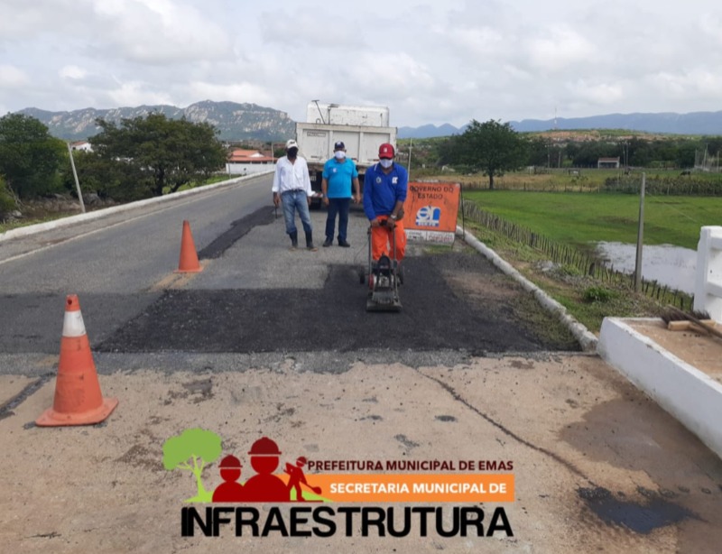 A prefeitura de Emas, através da Secretaria de Infraestrutura e o Departamento de Estradas e Rodagem do Estado da Paraíba-DER-PB, realizam a operação tapa-buracos, na PB 312, rodovia que liga o município a BR 361. Os trabalhos começaram nesta quinta-feira(25). No local estão sendo feitos serviços de tapa-buracos, roço do mato, drenagem, além de reparos em erosões.