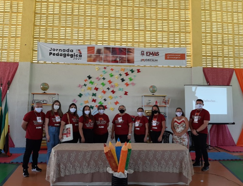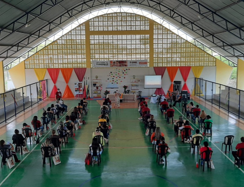 A Semana Pedagógica teve início segunda-feira (21) e segue até a quinta-feira (25). Está sendo observado o protocolo de saúde como, verificação de temperatura, distanciamento, uso de máscaras e número reduzido de participantes.
