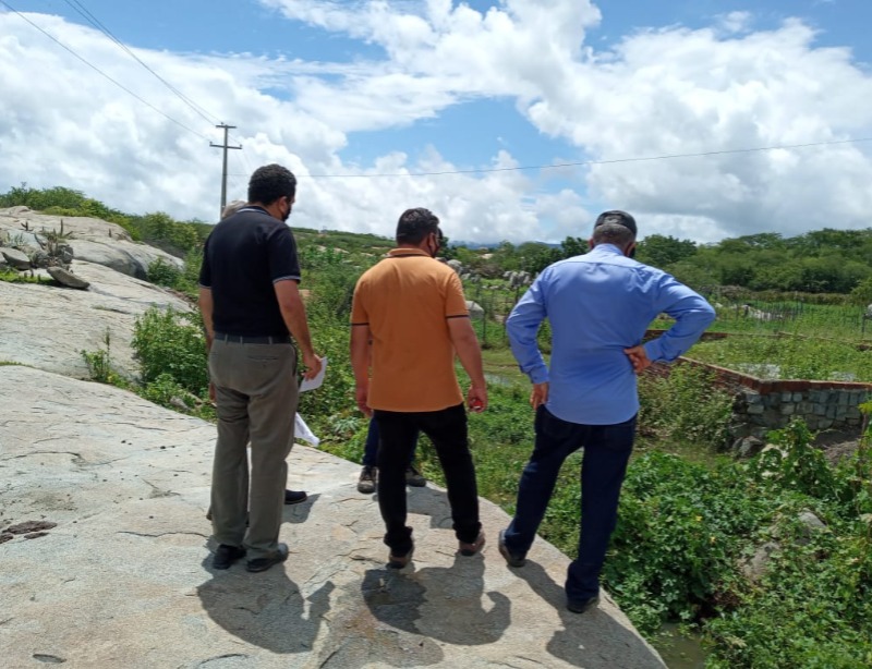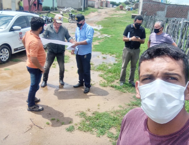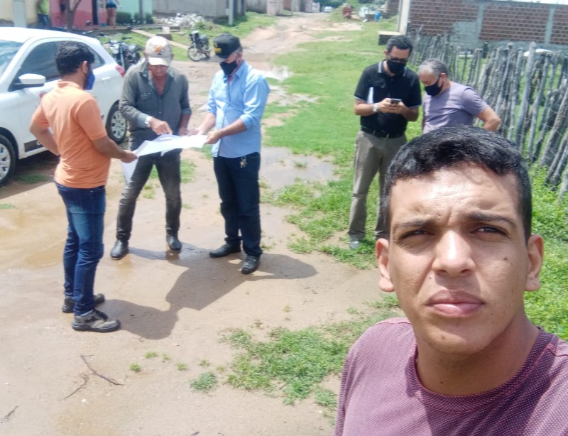 Amaro Araújo, estava na companhia do engenheiro, Junior Bonfim, do secretário de Agricultura, Lucermo Loureiro, do advogado Remígio, do diretor de apoio administrativo, Mateus Araújo e do presidente da câmara de vereadores Saturnino Xavier.