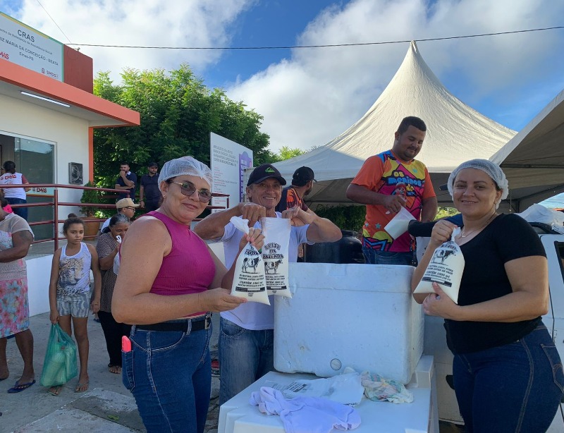 Foram distribuídos mil litros de leite, cinco mil e seiscentos pães e mil e duzentos peixes. É sempre muito gratificante poder contribuir com o peixe e o kit de alimentos para que as famílias do nosso município passem a Semana Santa com seu alimento na mesa.