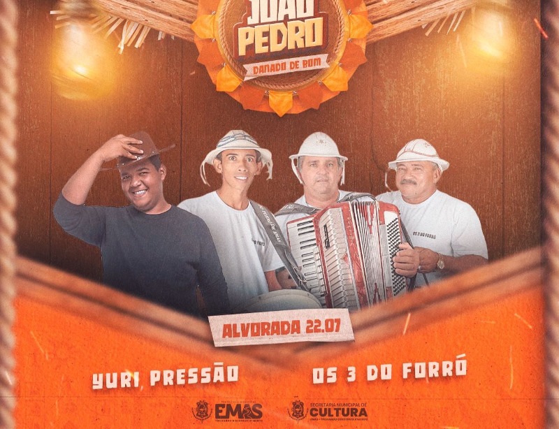 A prefeitura municipal de Emas divulgou nesta quinta-feira, dia 7 de Julho a programação oficial da tradicional festa de João Pedro do município. O evento acontecerá nos dias 22 e 23 de julho e contará com várias atrações musicais.