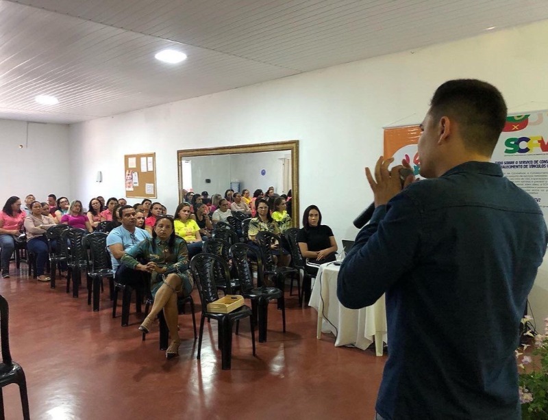 No turno da tarde, o encontro foi direcionado para auxiliares de serviços, merendeiras, equipe de banho da creche, pessoal da secretaria das escolas, agentes administrativos, motoristas, cuidadores dos ônibus, vigias, porteiros e diretores lotados nos mesmo centros educacionais. O encontro foi conduzido pelo o psicólogo clínico, Murilo Lacerda, que trouxe importantes considerações a cerca do tema saúde mental. « Voltar