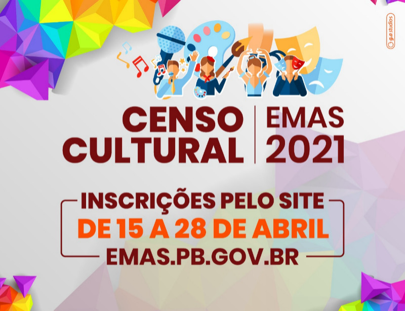 A Secretaria de Cultura de Emas, inicia nesta quinta-feira (15), até o dia 28 de abril, o censo cultural dos artistas e produtores culturais do município. Respeitando as exigências sanitárias da pandemia, as inscrições serão realizadas online, através de um formulário disponibilizado no endereço eletrônico: www.emas.pb.gov.br