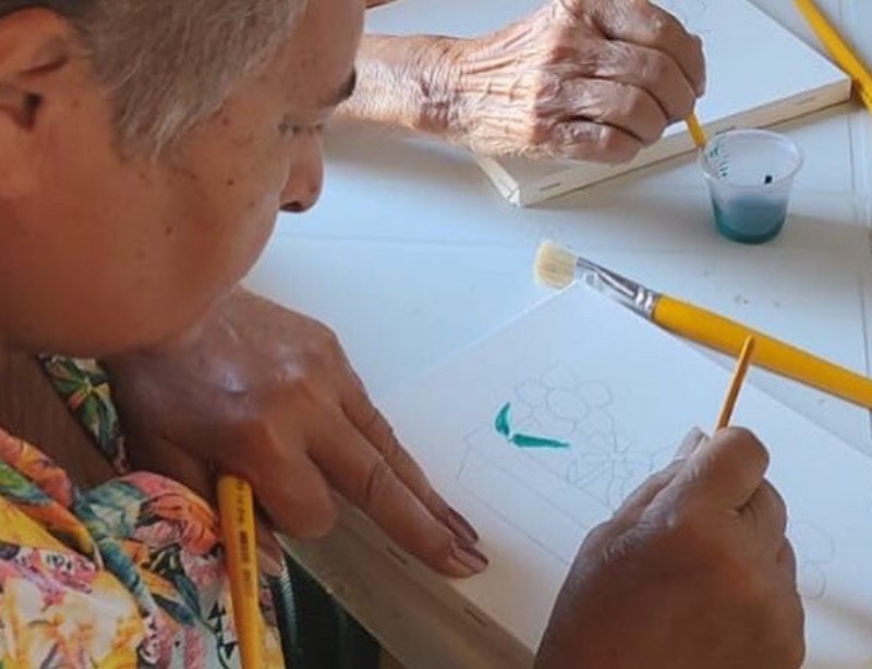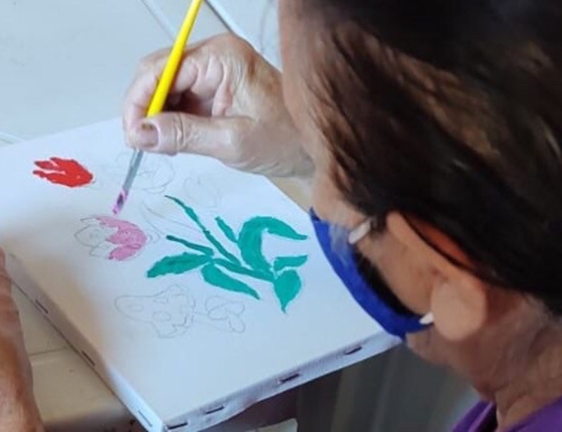 A pintura foi utilizada com o objetivo de estimular a concentração dos participantes do serviço, além disso ela é muito importante para trabalhar a motricidade fina, tanto em crianças quanto em idosos.